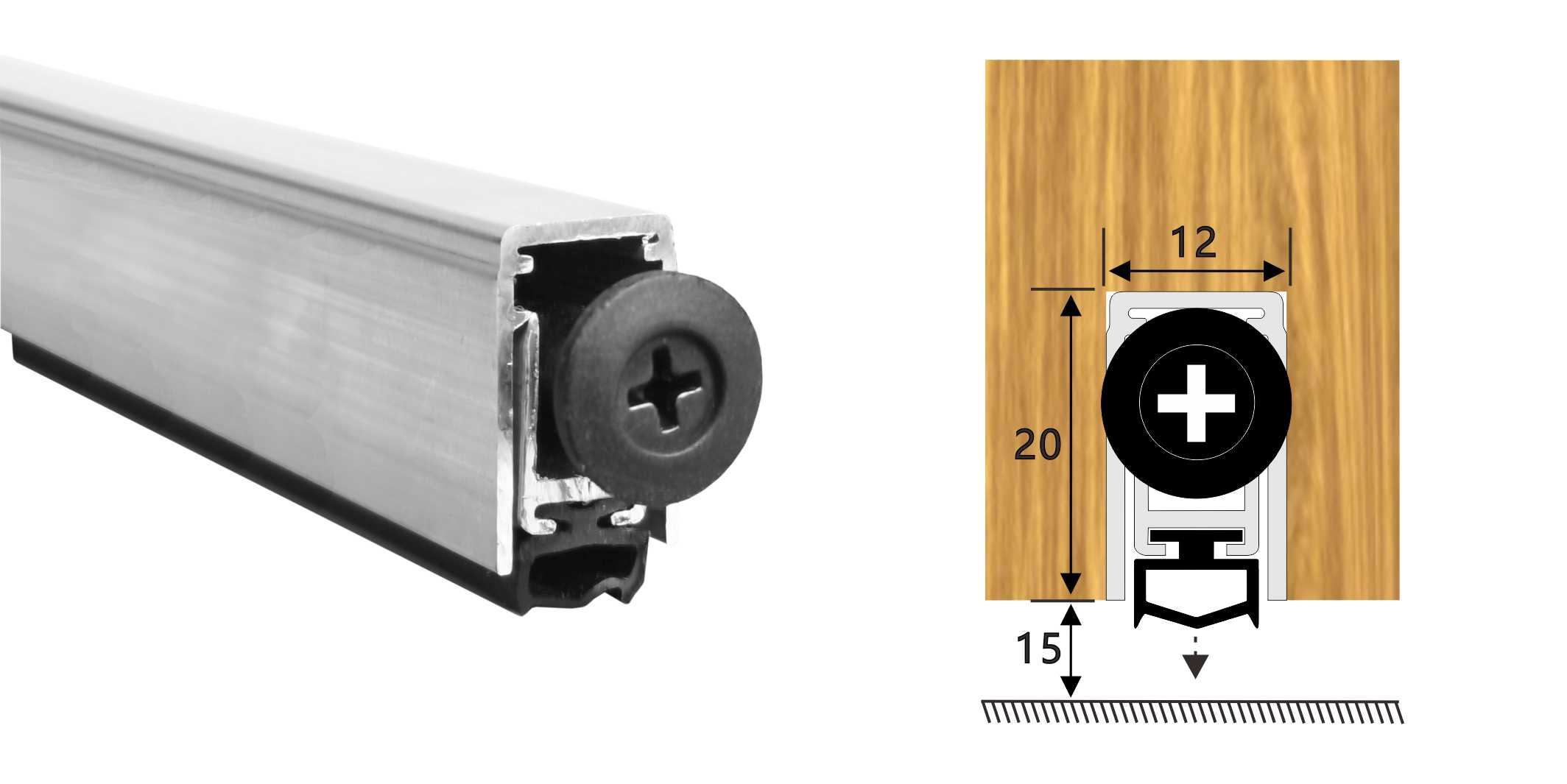 嵌入式門底自動(dòng)升降式密封器,四連桿機(jī)構(gòu),適用于門扇內(nèi)開槽的門。安裝時(shí)需在門底有一個(gè)20mm*12mm的通槽,將產(chǎn)品放置其中,將兩端蓋板和密封器用螺絲固定(或用螺絲從密封條底部向上固定),使用本產(chǎn)品不影響門的整體風(fēng)格。
