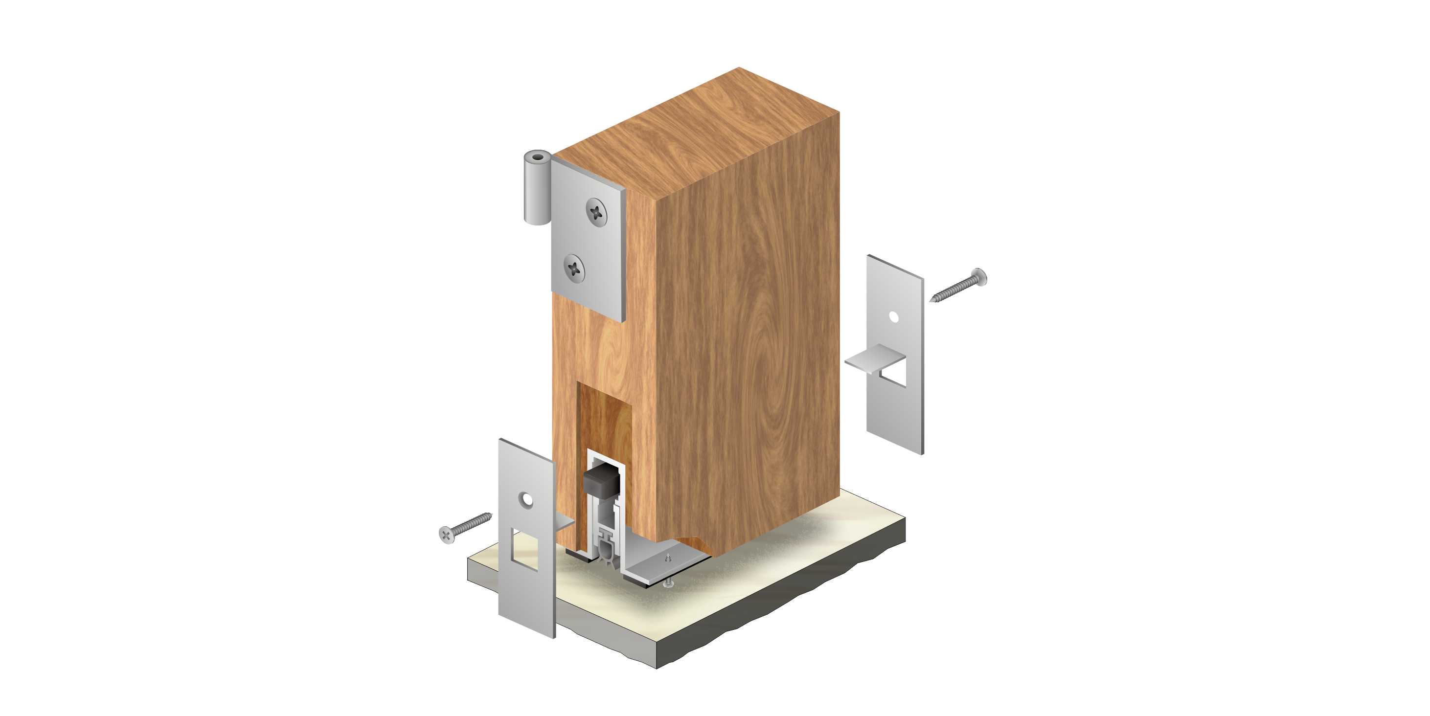嵌入式防火門底自動升降式密封器,M型彈簧結構,適用于門扇內開槽的門。安裝時需在門底有一個34mm*14mm的通槽,將產品放置其中,從產品的翼上固定,并將裝飾端蓋板用螺絲裝上,使用本產品不影響門的整體風格。